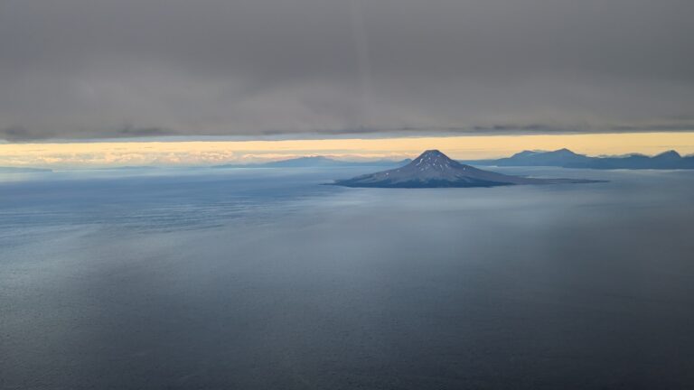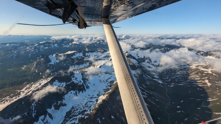 Het weer was erg goed en zo de uitzichten onderweg prachtig. Zijn nog midden over de “Augustine” vulkaan gevlogen. Wat een verschrikkelijk mooi natuurgebied is het Kenai schiereiland.