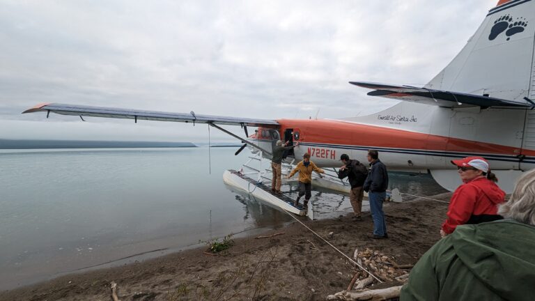 Vanmorgen voor dag en dauw (04:30) opgestaan voor de dag waar we erg naar uit hebben gekeken. Vandaag was het beren dag en vlogen we per watervliegtuig naar “Brooks Falls” in Katmai National Park. Om iets voor 6 uur arriveerden we bij Emerald Air Service voor de check-in. Rugzakken wegen we wijzelf ook en daarna mochten we aan boord. Het watervliegtuig was best ruim en comfortabel en ex luchtmacht piloot “Don” was erg vriendelijk.