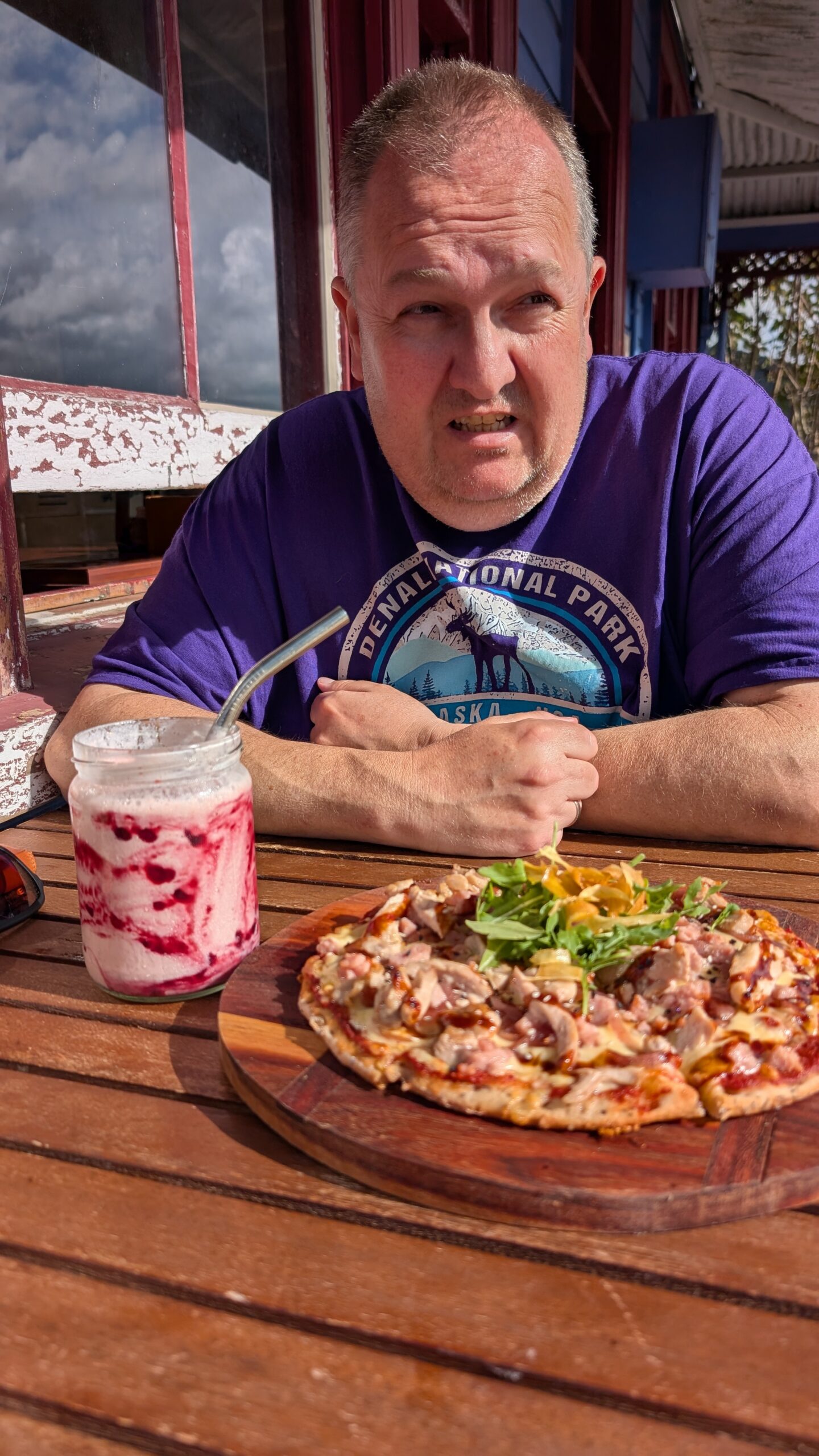 Aan al het goede komt een einde en zo helaas ook aan deze leuke tour. We hebben nog een lange rit voor de boeg naar het mooie Hahei wat op het schiereiland Coromandel is gelegen langs de oostkust. De weg hier naartoe was afgelopen twee dagen nog afgesloten met dank aan cycloon “Tam” maar is nu weer geopend gelukkig. Onderweg eten we een overheerlijke pizza met een net zo lekkere aardbeien milkshake in het dorpje “Te Aroha”.
